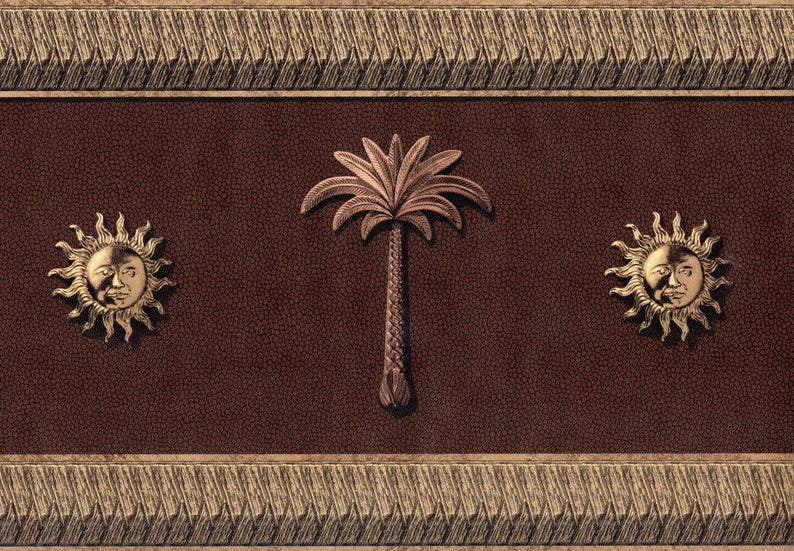 Everybody likes a pleasant picture when working everyday on computers. You will want to have this Textured Wallpaper Border Embossedsun Medallionpalm Tree Dark Leather Lookingdark Brownart Decobedroom Wall Decor Bathroom Wall Deco picture directly on computer desktop ! Known as wallpaper, in other words, your personal machine wallpaper brightens up the afternoon and is a superb distraction between long hours of work. A wallpaper is the setting on your hard drive screen. Youll have different images in several graphic formats like jpeg, gif, png and bmp, among others. You must opt for a wallpaper that supplies the best resolution to your screen. The standard image resolution prevalent is 1280x1024, 1024x768.
